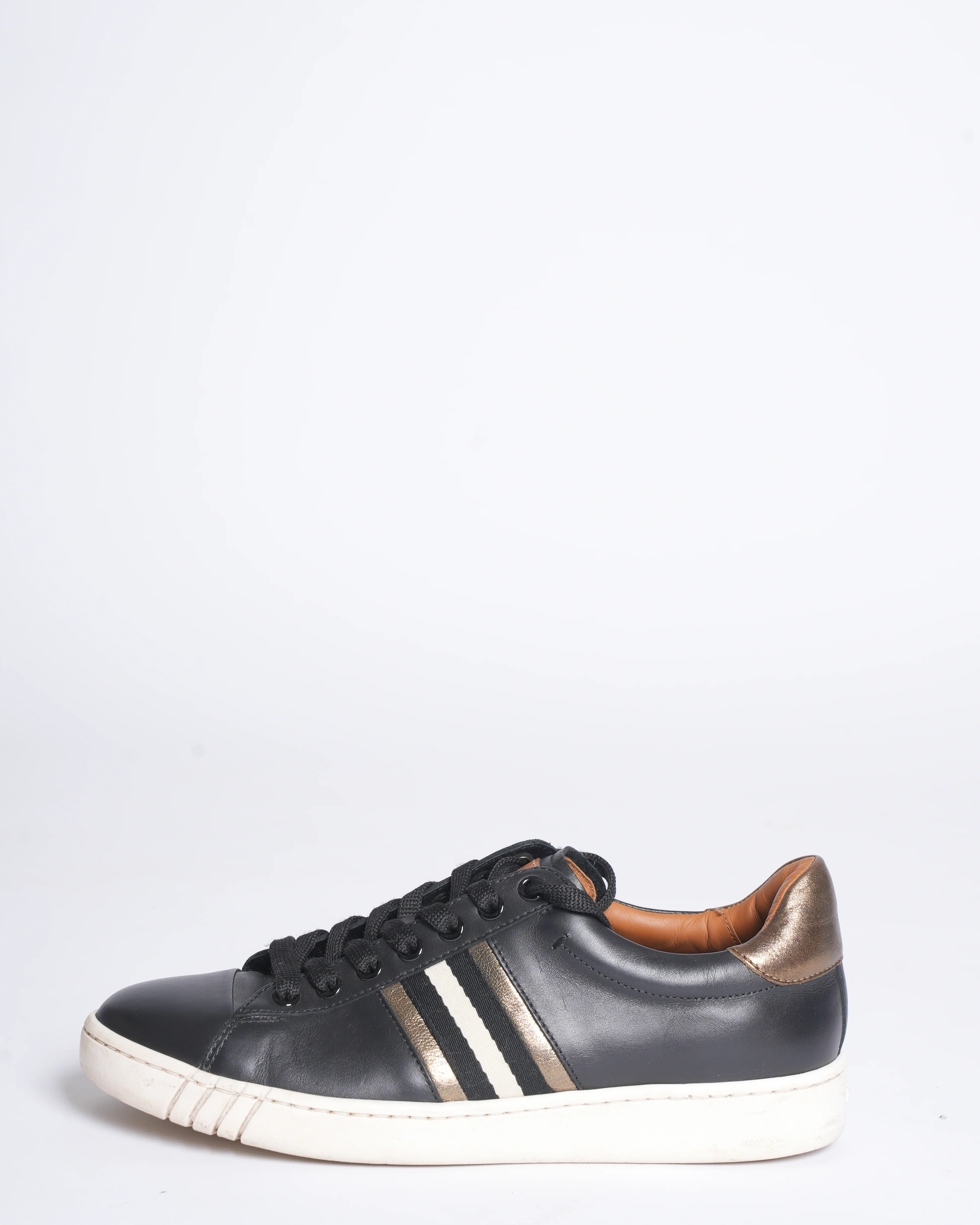 The Bally Leather Sneakers are a perfect blend of luxury and casual style, crafted from premium leather for durability and a sleek finish. Featuring the brandās signature stripe detailing, these sneakers offer a timeless and sporty aesthetic. The padded interior ensures all-day comfort, while the sturdy rubber sole provides excellent grip and flexibility. Whether paired with jeans for a relaxed look or dressed up for a smart-casual occasion, these Bally sneakers make a versatile and stylish addition to any footwear collection.