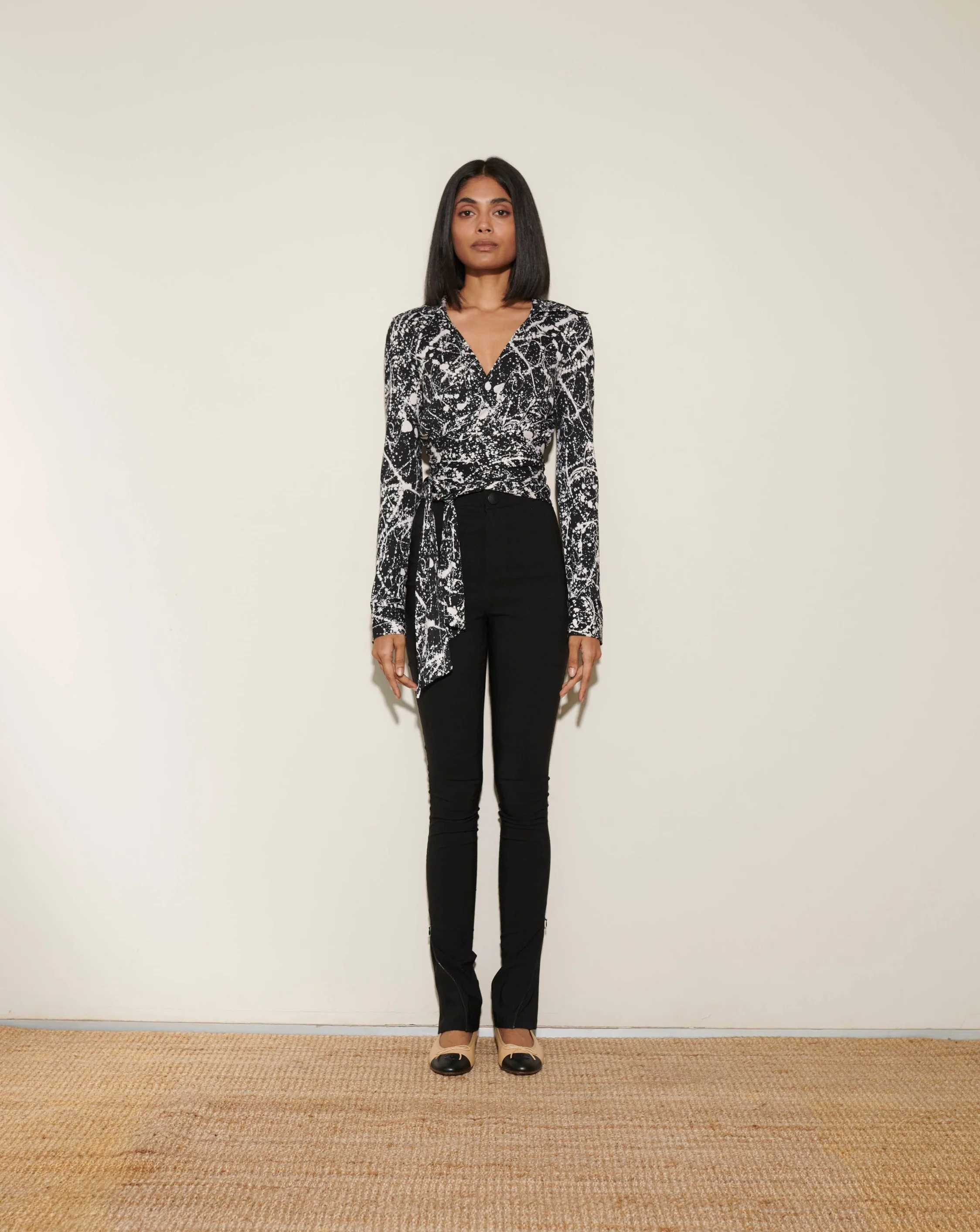 Dvf Black & White Wrap Blouse