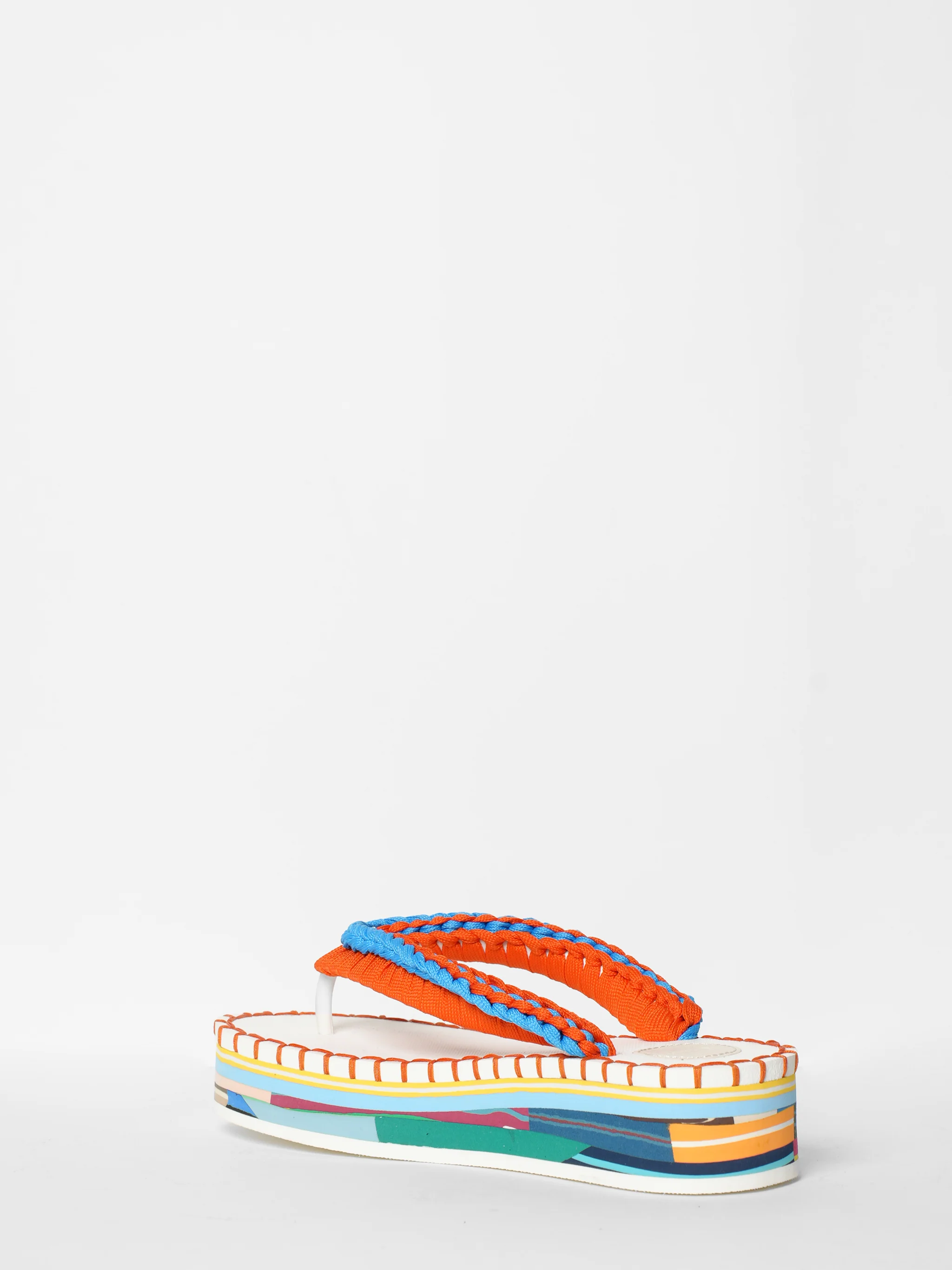 ⢠Sole made from layered, recycled flip flops for a striking graphic effect