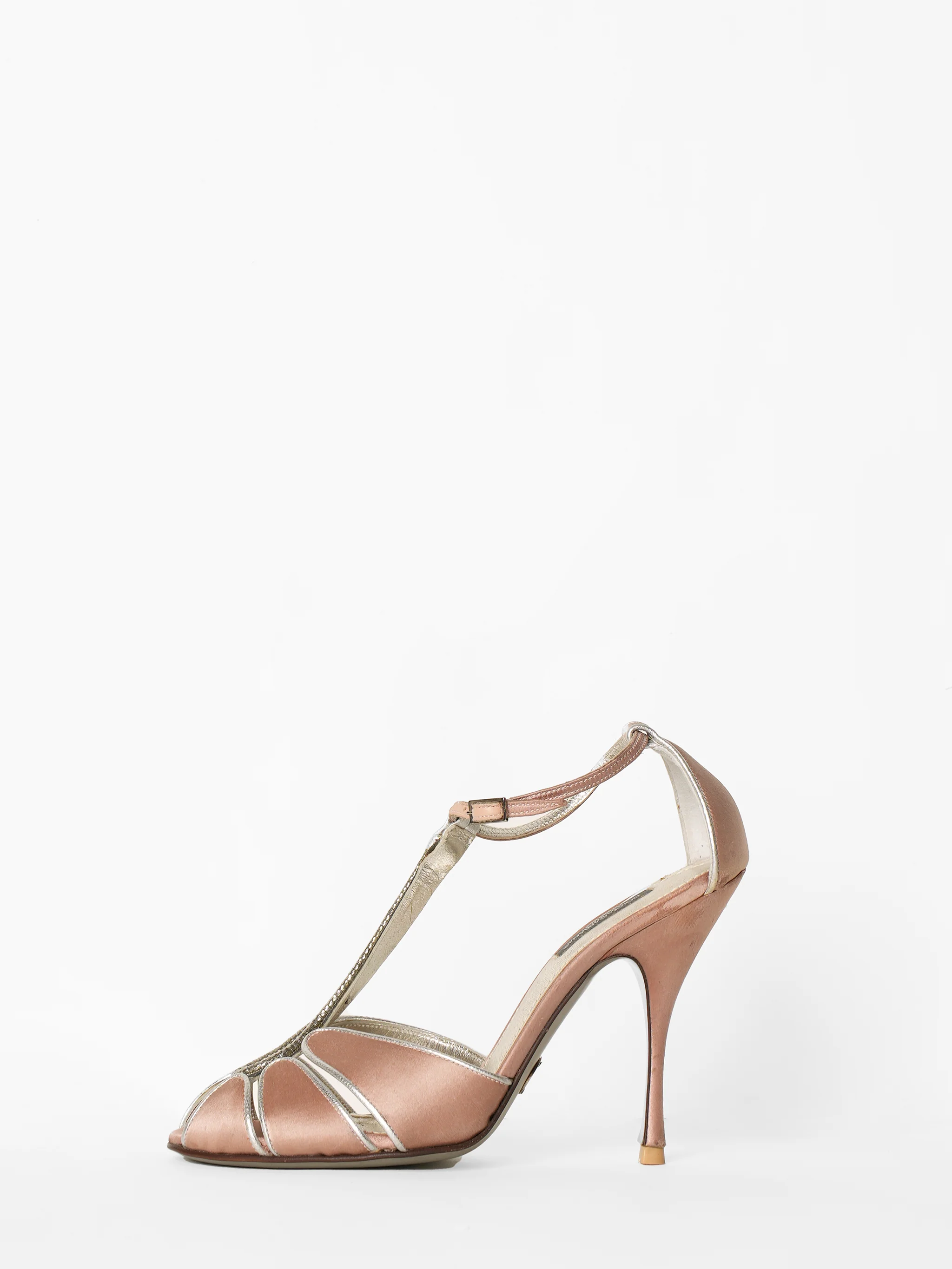 Dolce & Gabbana Satin Rose Pink Heels With Silver Trimmings