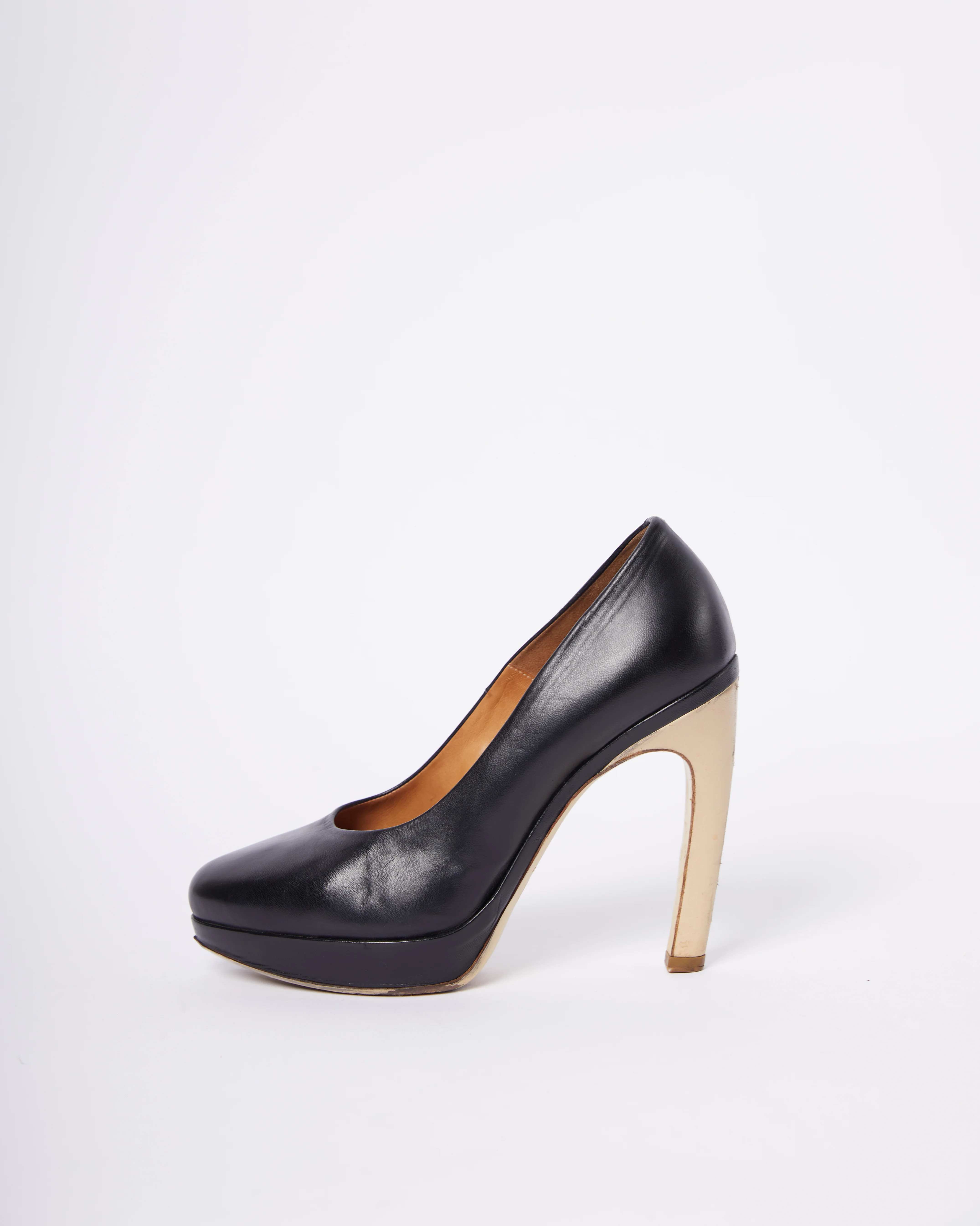 Dries Van Noten Black Pumps are sleek, sophisticated shoes known for their minimalist design and high-quality craftsmanship. With a timeless silhouette, they offer a perfect balance of elegance and modern style.