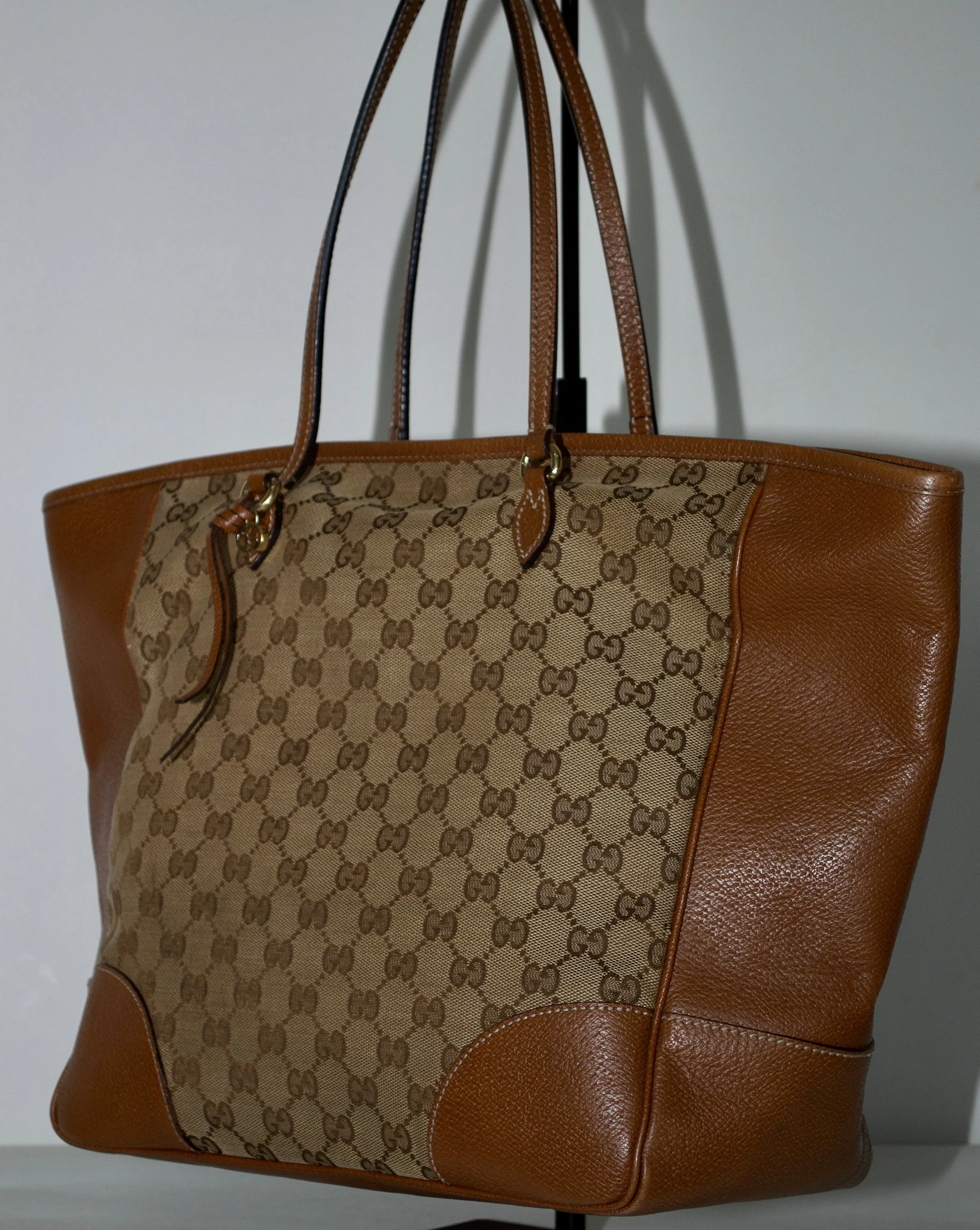 Gucci Monogram Medium Bree Zippered Tote Beige Tabacco