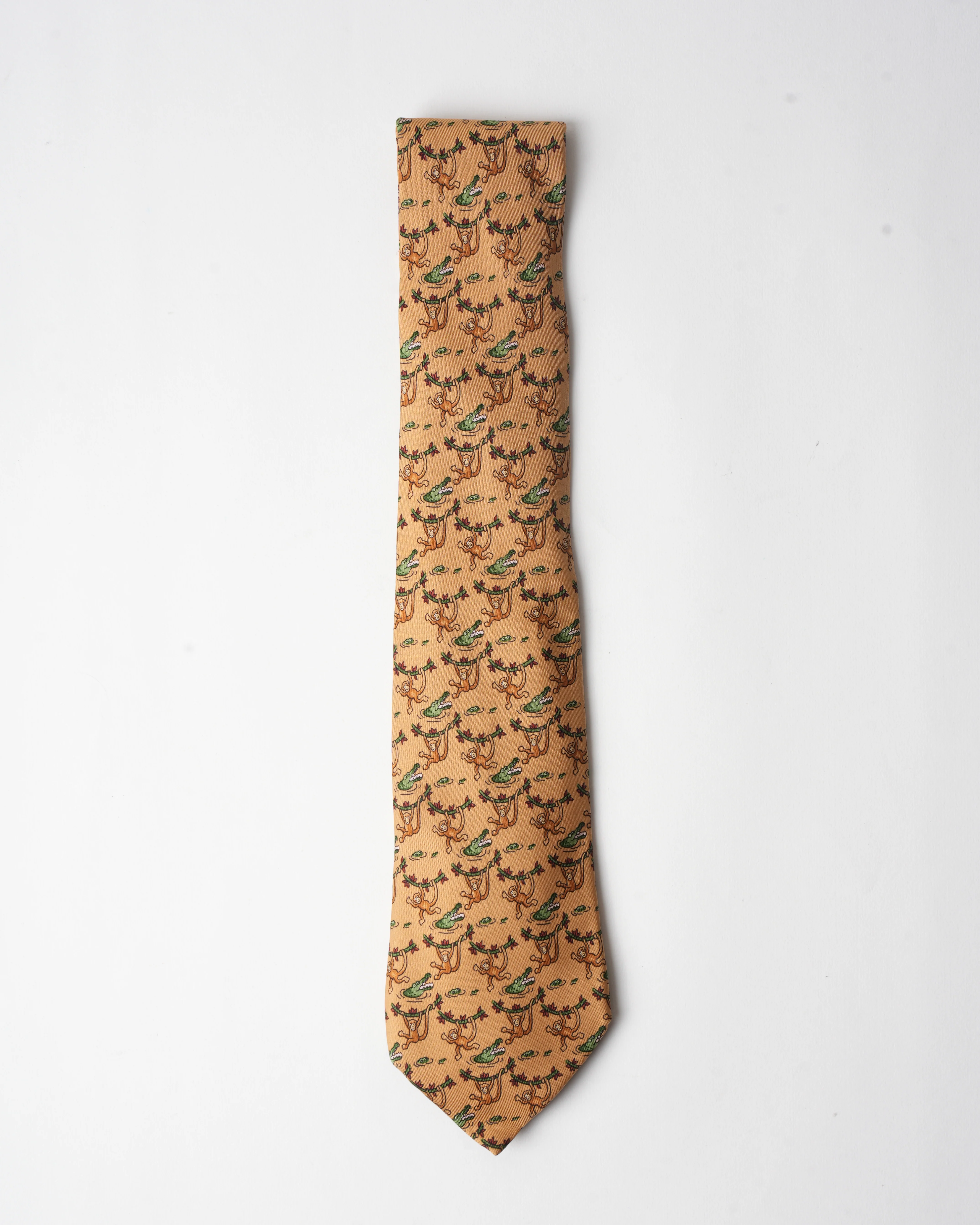 Hermes Vintage Silk Monkey and Croc Tie