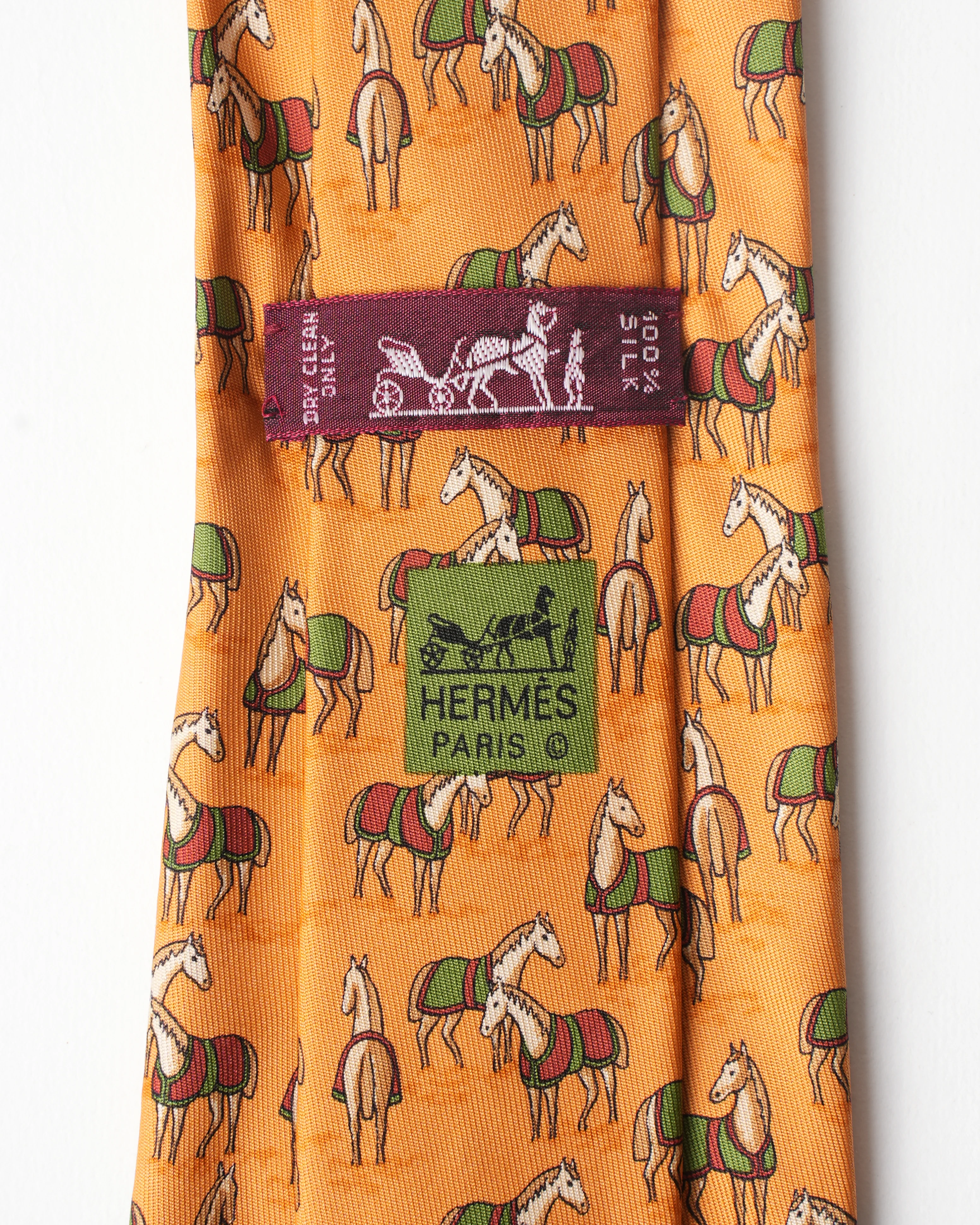 Preloved Vintage Hermes Tie have special interlining laid between the silk layers, meanwhile, is what gives an Hermès tie its beloved hand-feel and springiness, puckering and falling in just the right way touch