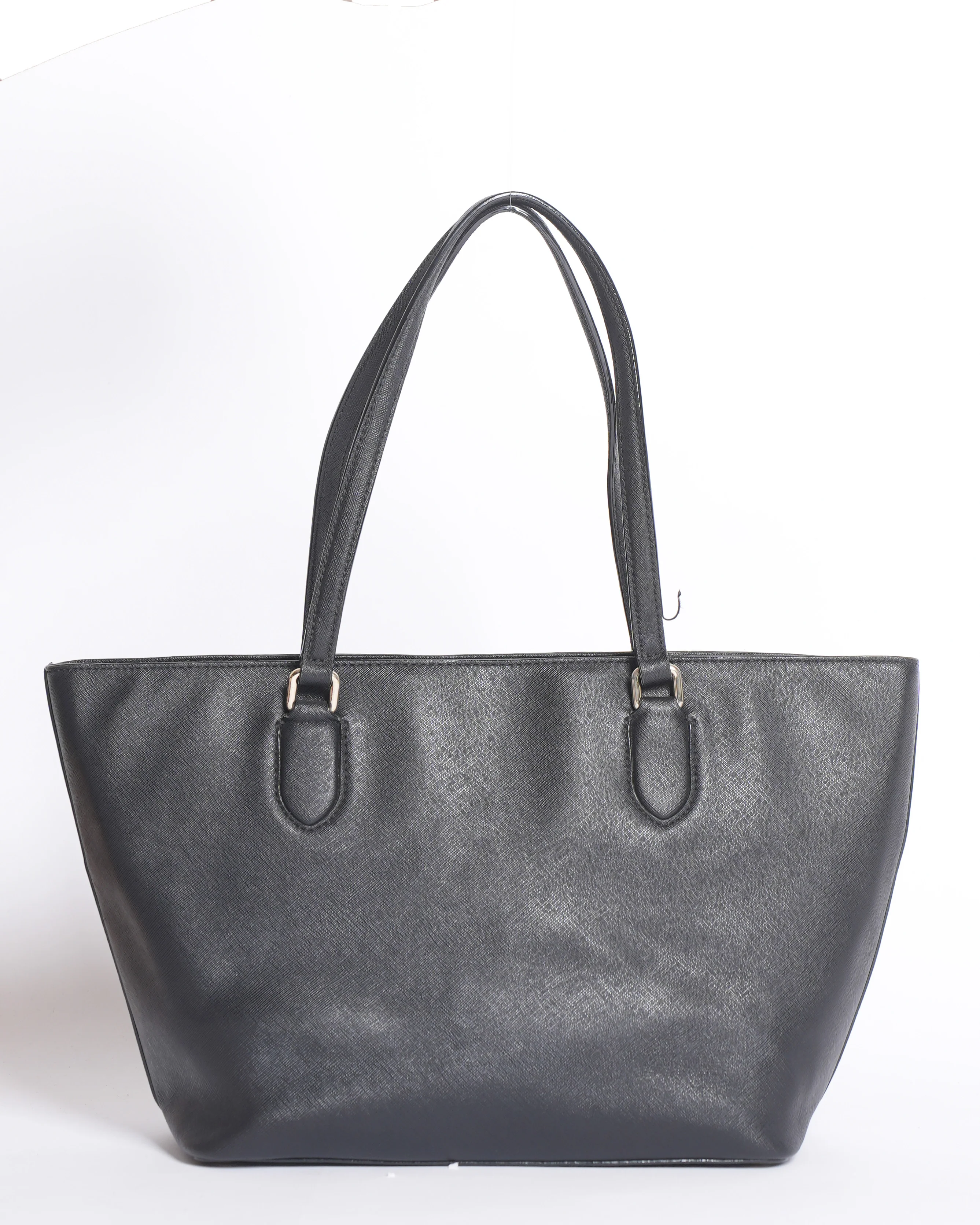 The Kate Spade Cameron Black Large Laptop Bag is a sleek and sophisticated accessory designed for both style and functionality. Crafted from durable saffiano leather, this spacious tote features a structured silhouette with a minimalist black finish, making it perfect for work or everyday use. The bag includes dual shoulder straps for comfortable carrying, gold-tone hardware for an elegant touch, and a secure zip closure to keep your essentials safe. With ample space to fit a laptop and other daily necessities, this versatile bag effortlessly blends practicality with timeless Kate Spade charm.