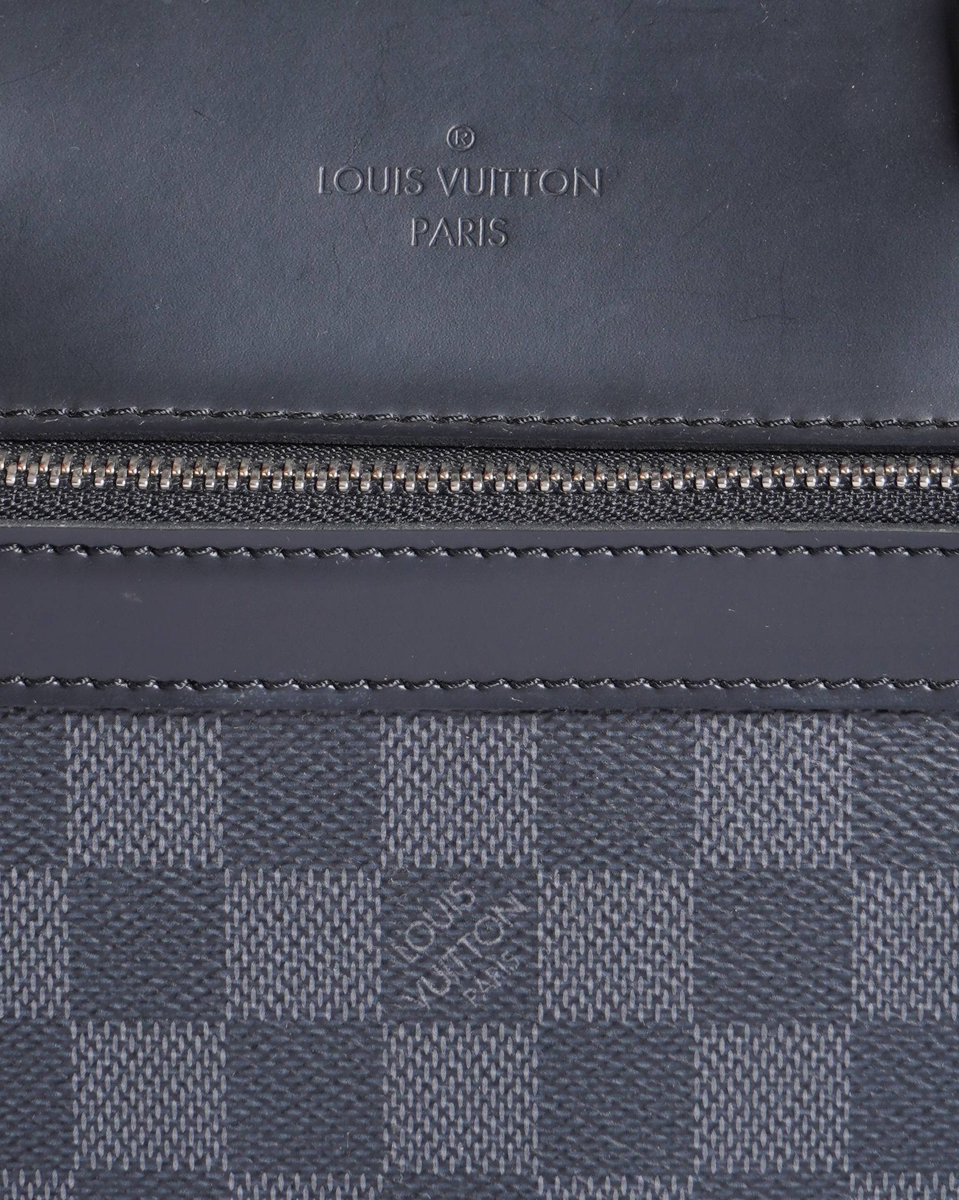 Louis Vuitton office bag is a classic and professional accessory. The bag is crafted from a durable black leather, and features the brand's iconic Damier check pattern subtly embossed all over. The silhouette has a structured, rectangular shape with dual top handles and a top zip closure for added security.
