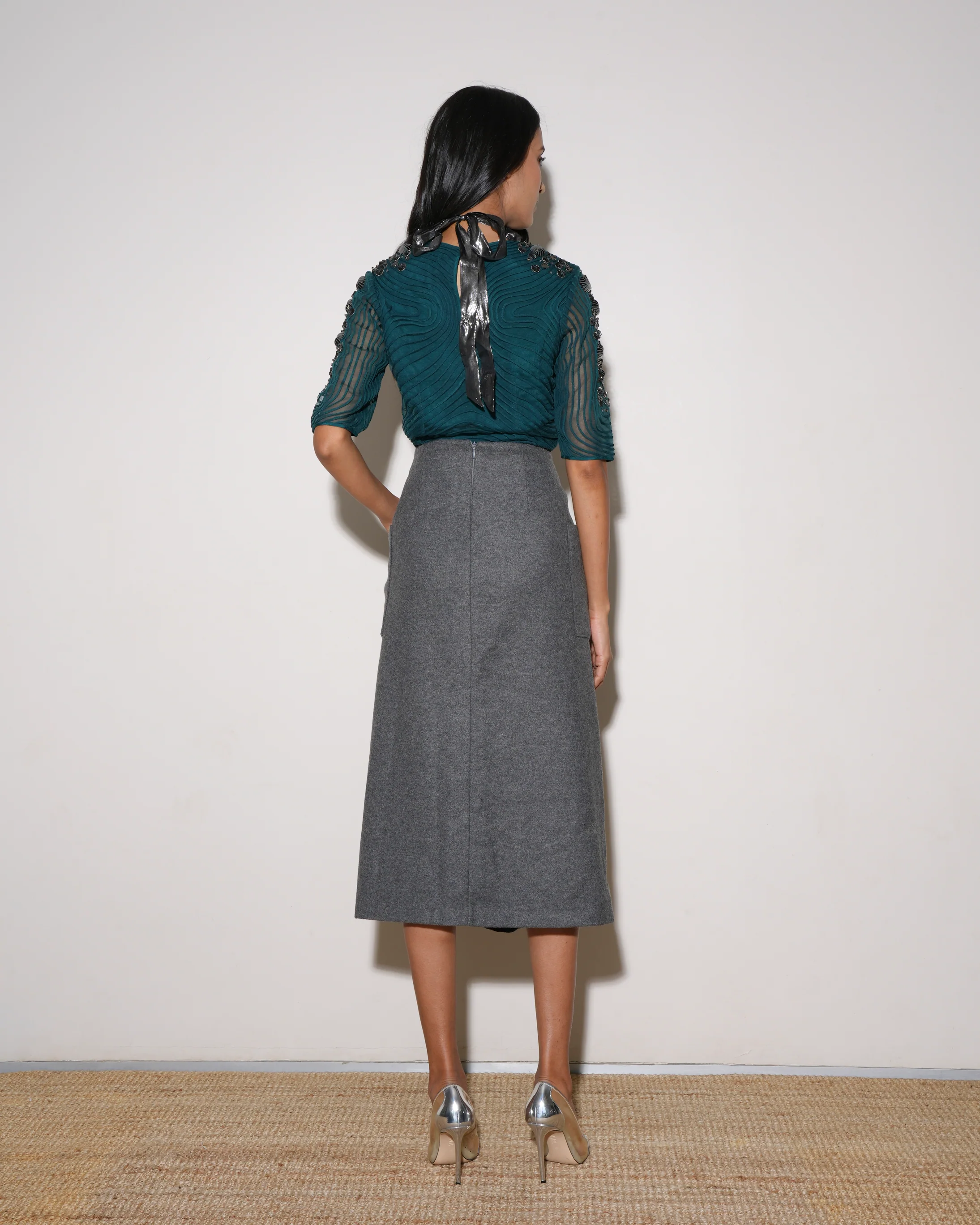 Rohit Gandhi & Rahul Khanna Pleated Peacock Blue Top
