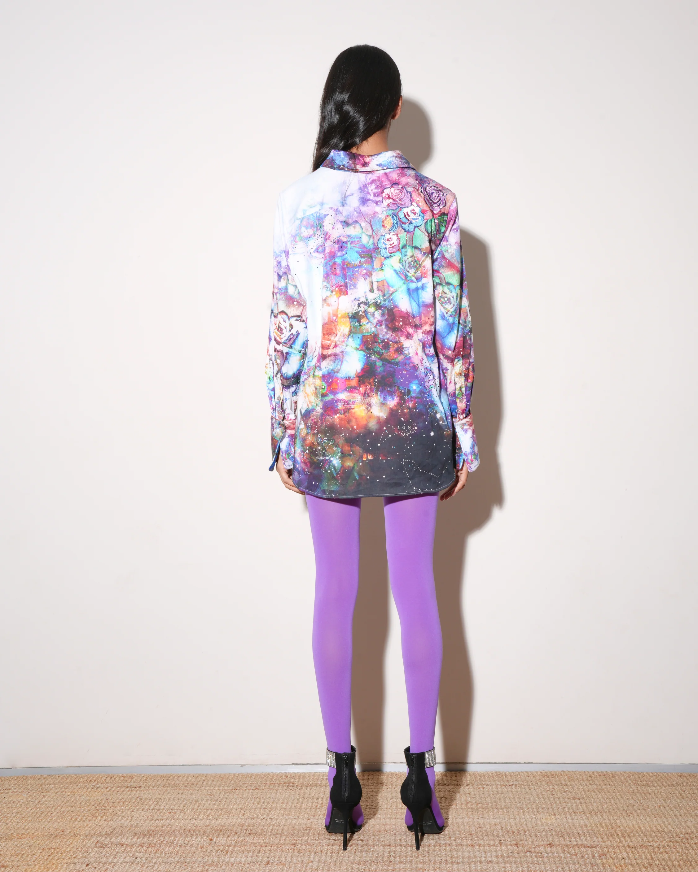 ⢠Front button down collar top