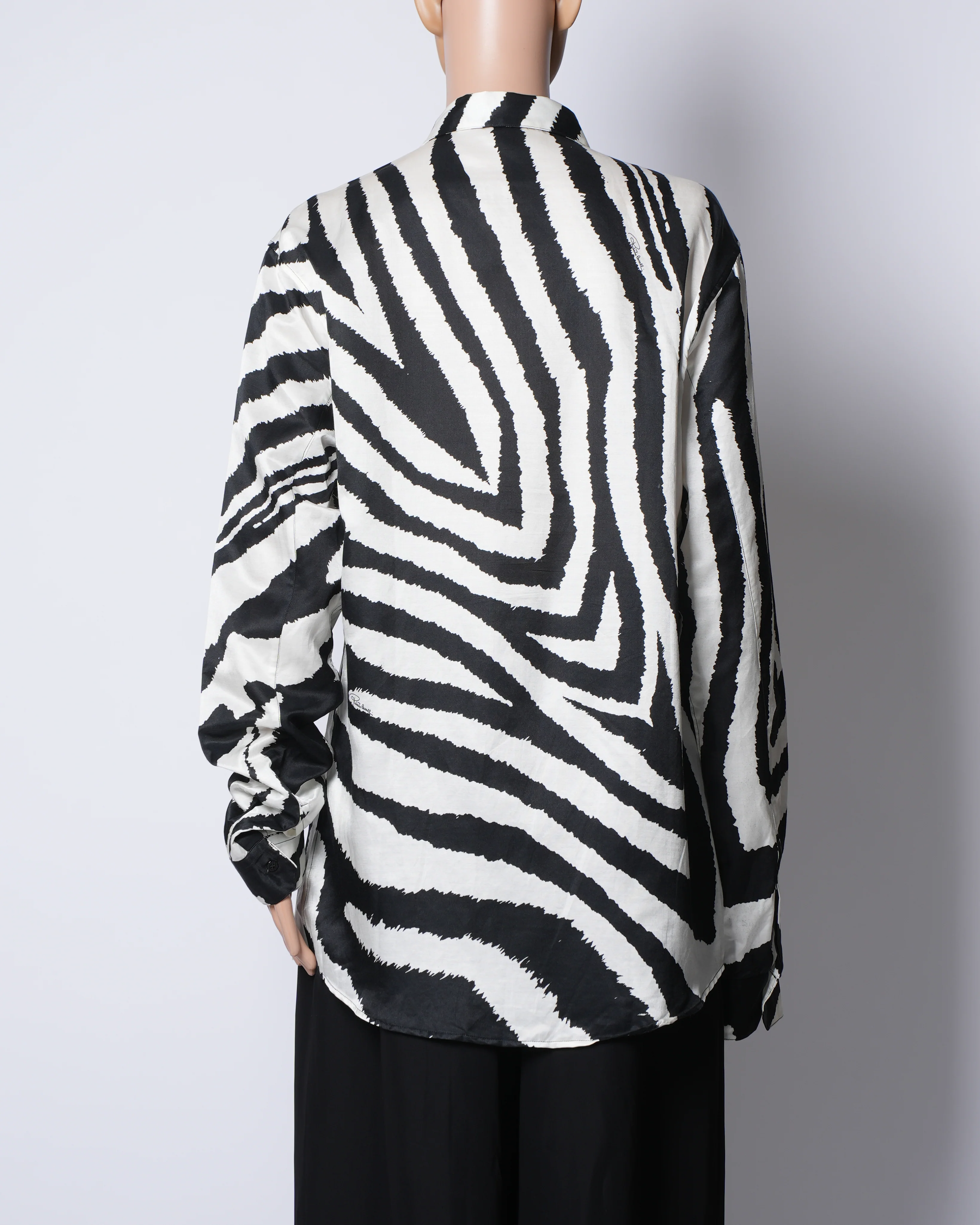 Roberto Cavalli button-down shirt features a striking zebra print, offering a bold and chic statement piece. Crafted from luxurious silk, it combines comfort with high-fashion appeal, making it a versatile addition to any wardrobe.