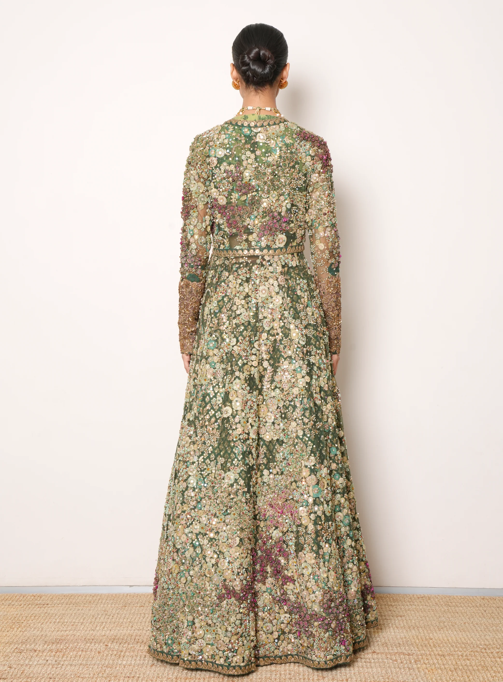 Sabyasachi Green Lehenga With Heavy Zari & Sequins Work Jacket